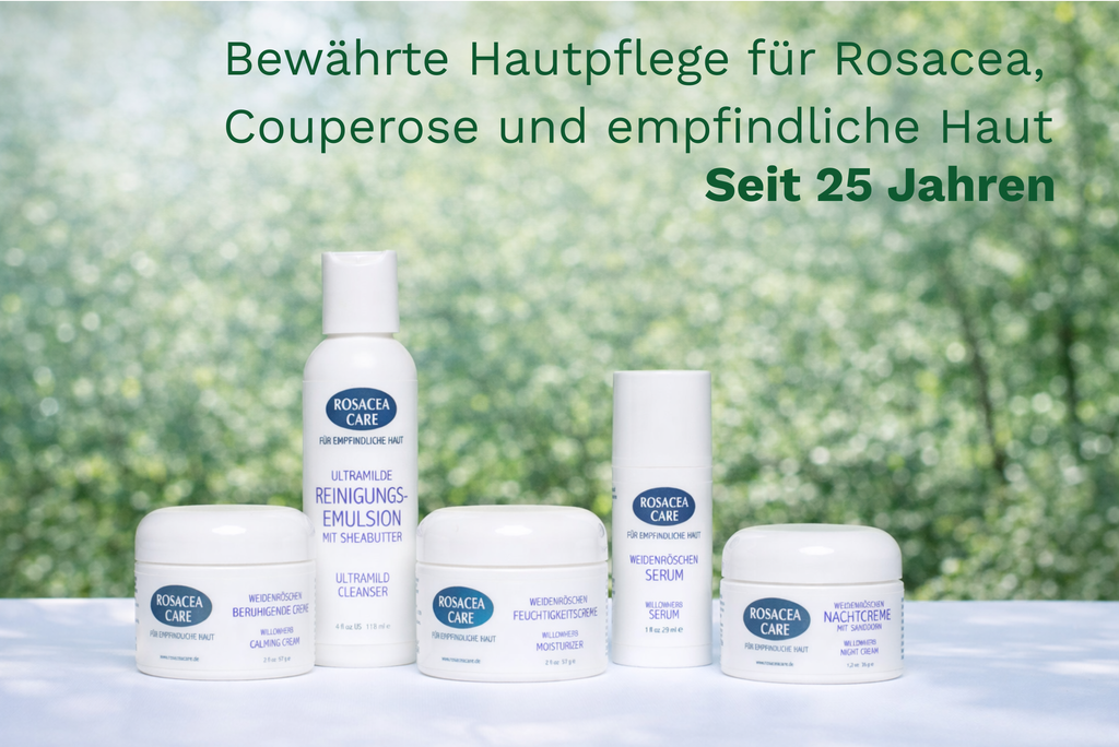 Rosacea Care widmet sich seit über 25 Jahren ausschließlich der Entwicklung von milden, naturbasierten Produkten für die Pflege von Rosacea, Couperose oder empfindlicher Haut.
